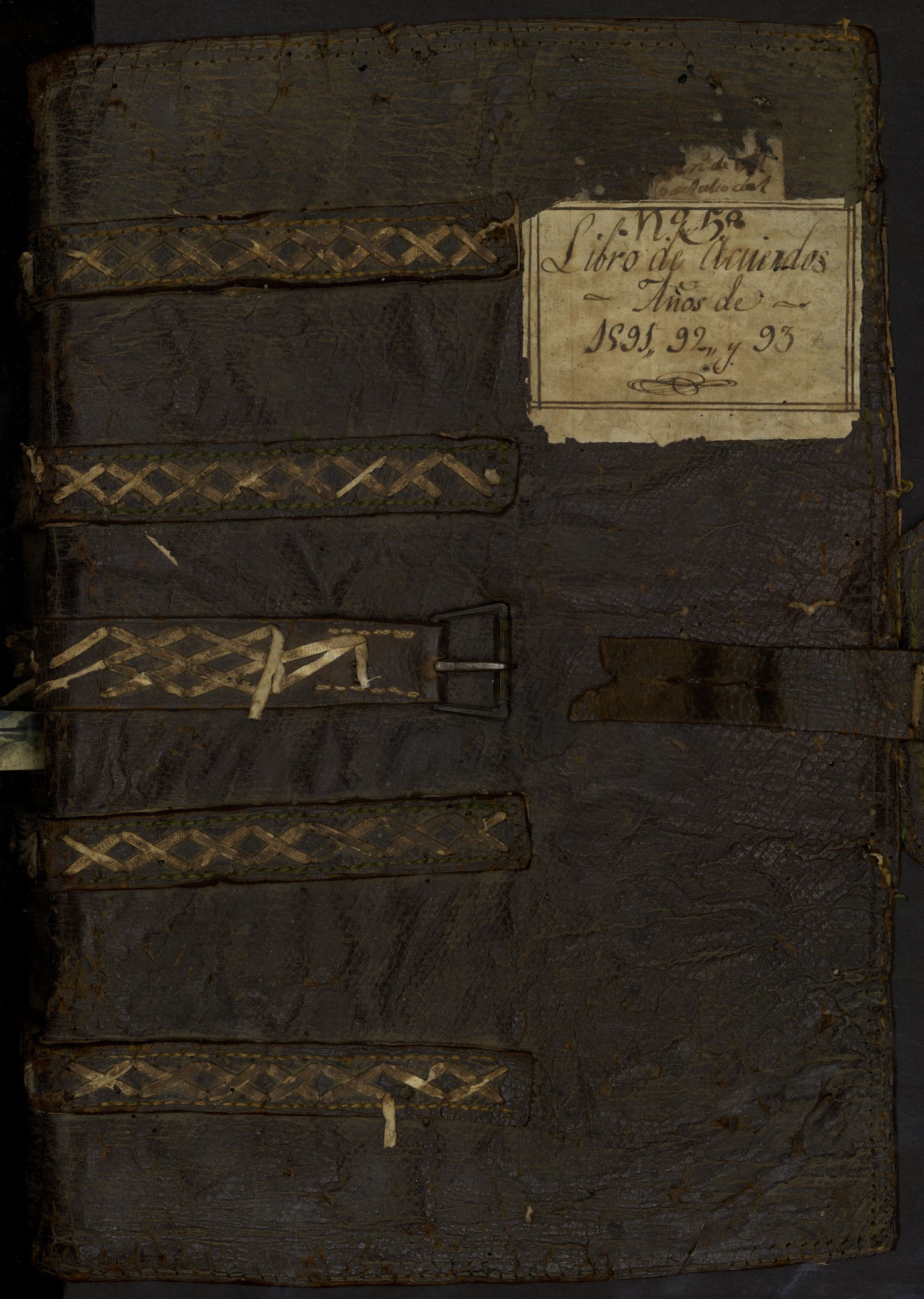 Las encuadernaciones más tempranas, de un aspecto más sobrio, presentan cubiertas en cuero oscuro, resistente, con cierres de correas trenzadas y hebillas metálicas. La identificación se hacía mediante una etiqueta manuscrita pegada en la tapa. El uso continuo, y su gran voluminosidad ha terminado dañando algunas de estas encuadernaciones.