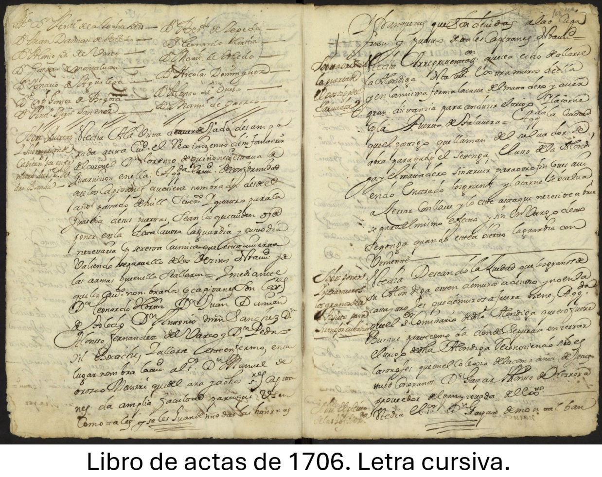 El interior de las actas refleja la evolución de la escritura oficial. Los libros de actas conservan la caligrafía de los escribanos municipales, profesionales especializados en la redacción de documentos públicos. A lo largo de los siglos XVI al XVIII, la escritura experimentó cambios significativos, que pueden apreciarse en los ejemplares seleccionados.